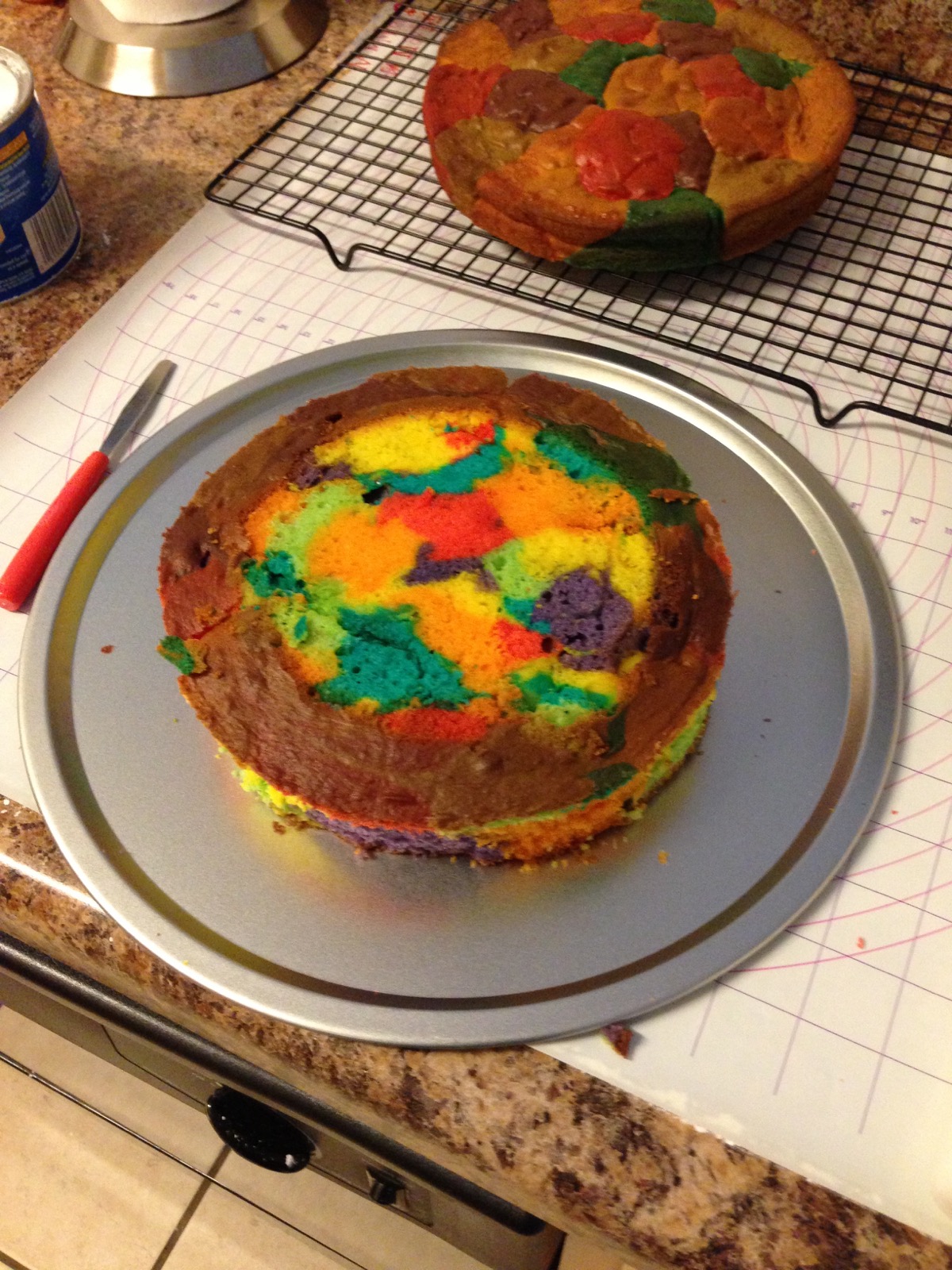 I made this cake for a friend's Birthday. The inside was yellow cake with food coloring.